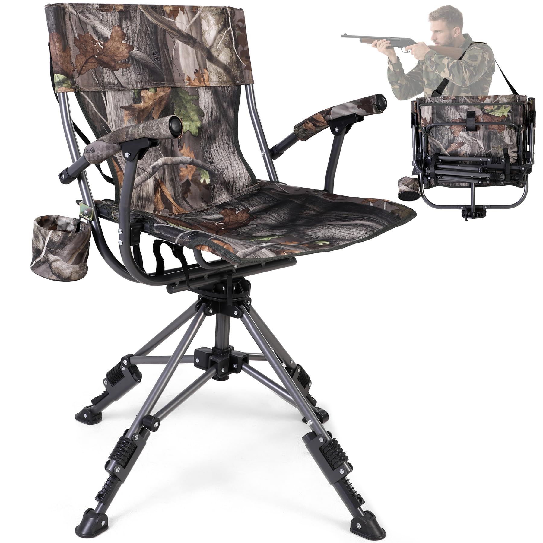 360° Swivel Hunting Chair with Adjustable Feet for Ground Blinds, Portable Folding Camo Camping Chairs for Adults Hunting Seats with Hard Arms for Fishing Camping