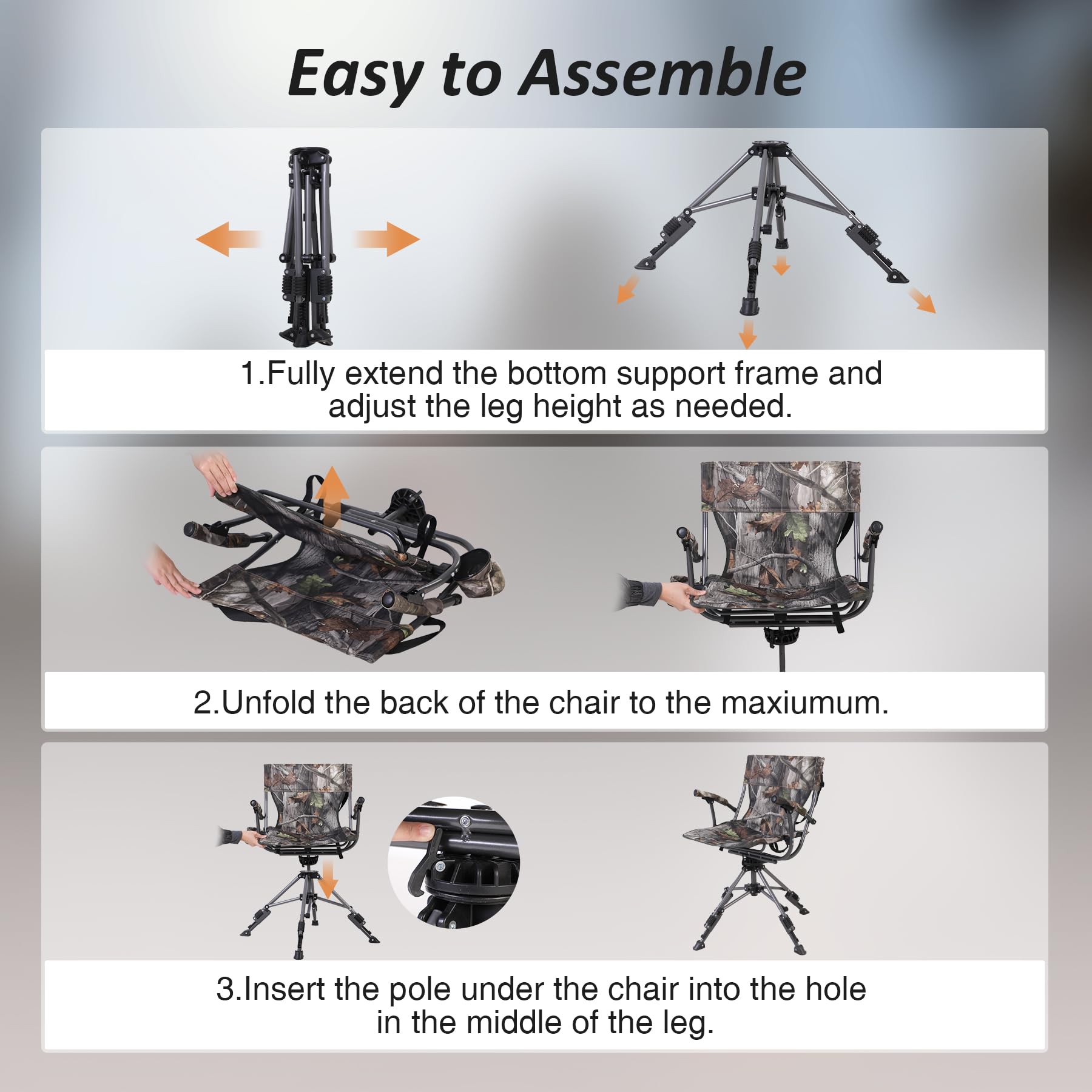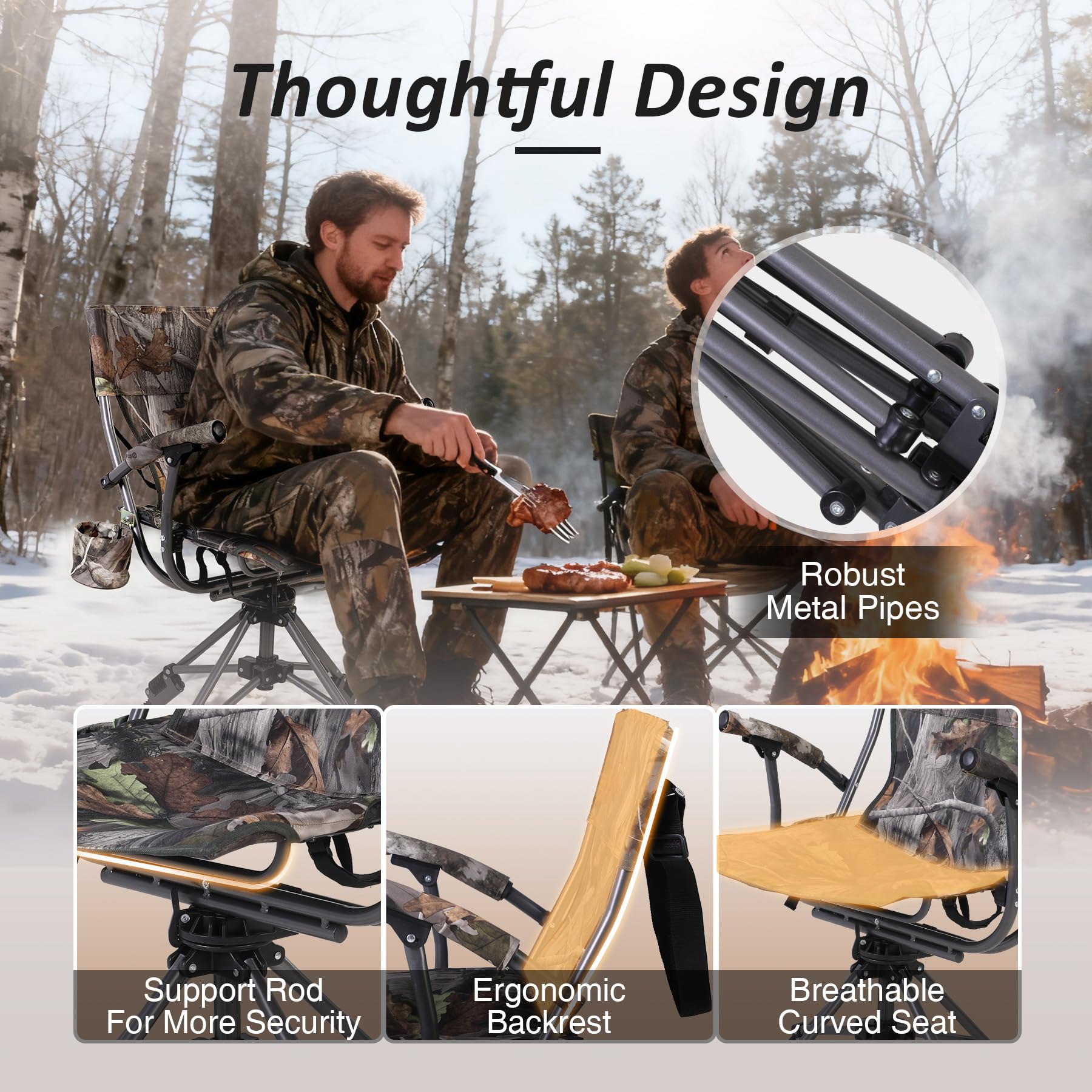 Whisper-Quiet 360° Swivel Engineered for the keen outdoorsman, this hunting chair features a seamless 360° rotating base that delivers a full-range view, pulling you deeper into an engaging outdoor experience. The swivel mechanism operates quietly and smoothly, allowing you to stay focused on your surroundings without distraction.++