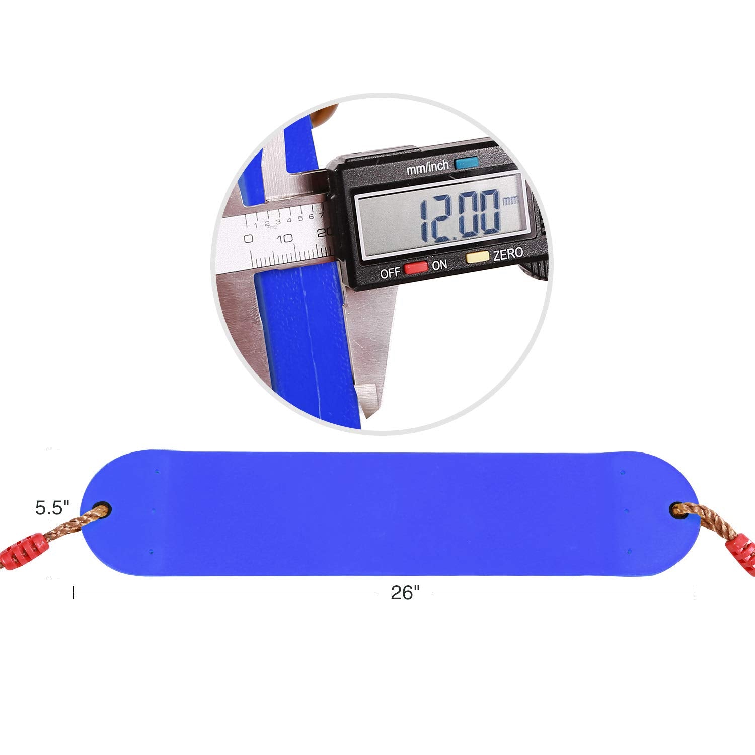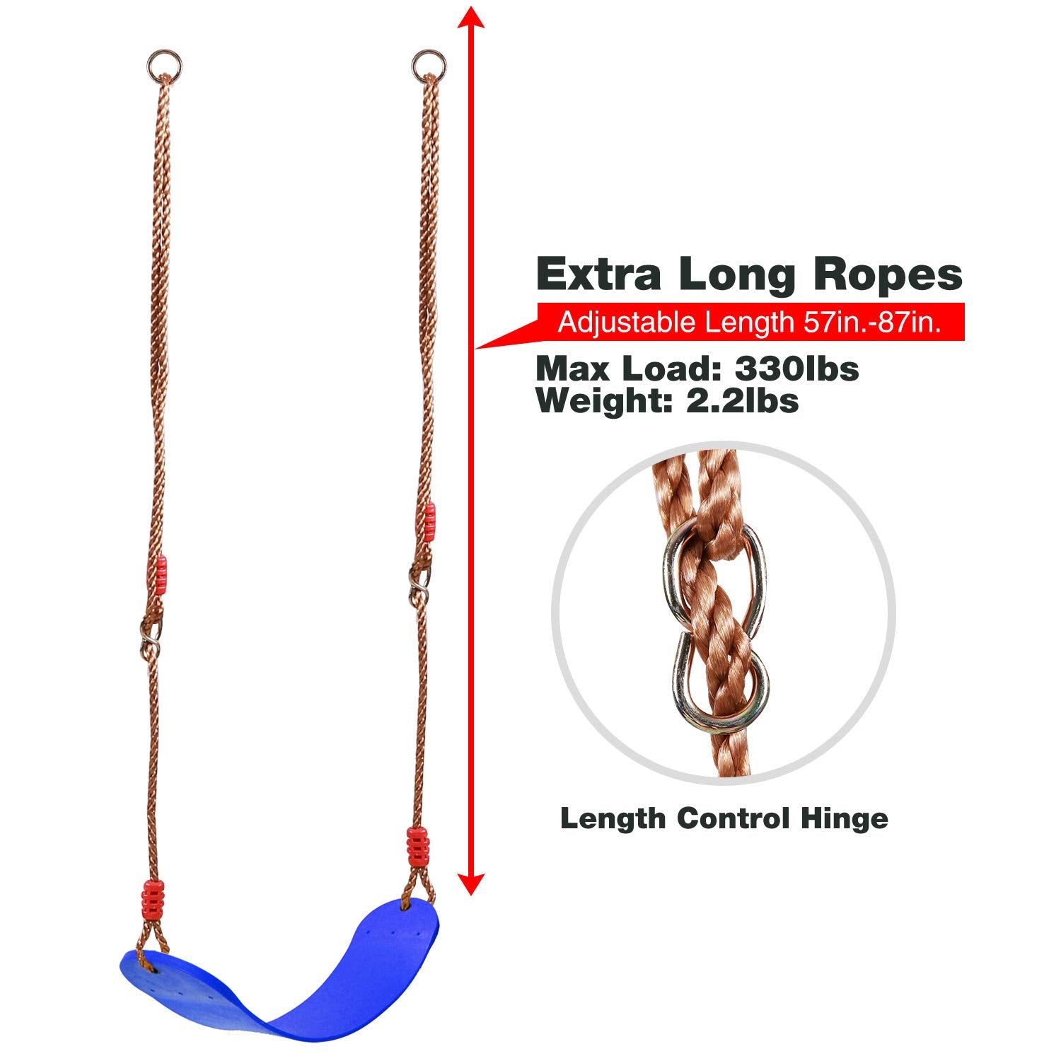 ❤ADJUSTABLE SWING: The rope length of the swing for backyard can be adjusted from 57'' to 87” by the length control hinge according to your needs. Seat Dimensions: L26”xW5.5”; Thickness: 12mm.