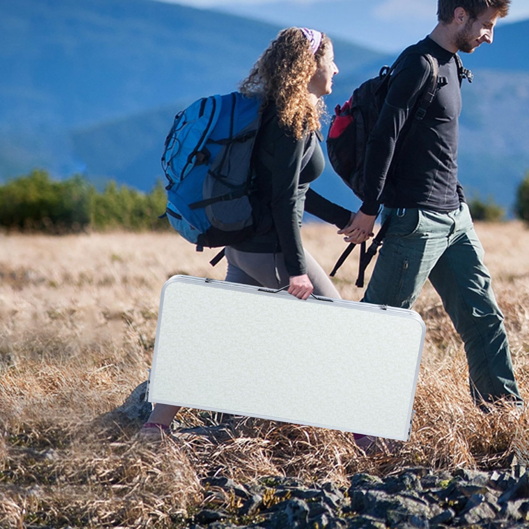• Compact and Lightweight: Our aluminum folding table is designed with both convenience and durability in mind. Weighing just 9.6 lbs, it's easy to transport and store, giving you a reliable surface for various outdoor activities.
