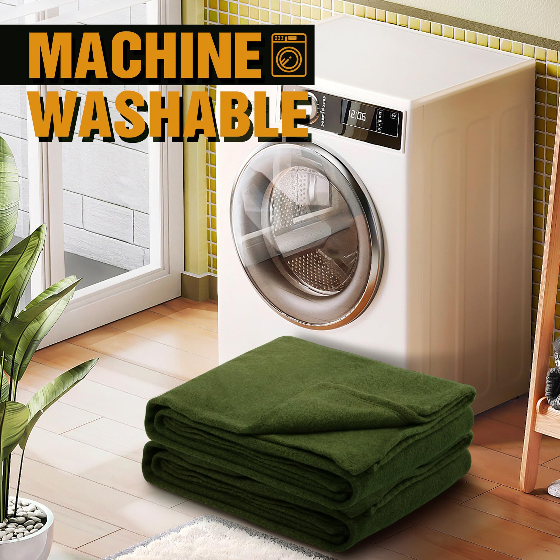 Wool Blanket, Warm and Thick Wool Camping Blanket- Great for Outdoors, Camping, Stadium Blanket, Picnics, Travel and Car, Machine Washable 86"x 63" Green