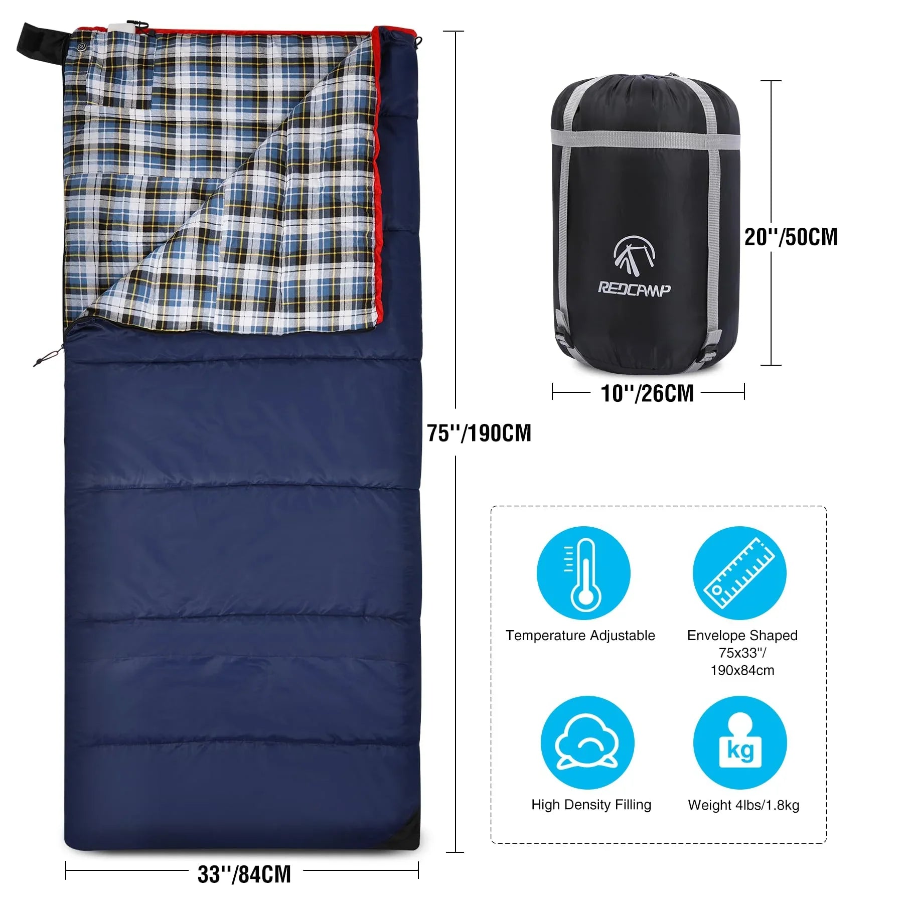 • Comfortable & Durable: The heated sleeping bag is made of waterproof polyester shell and soft hollow fiber polyester filling keep your heat inside. High-quality polyester with a waterproof coated shell delivers great durability. The liner is cotton flannel, which is skin-friendly.