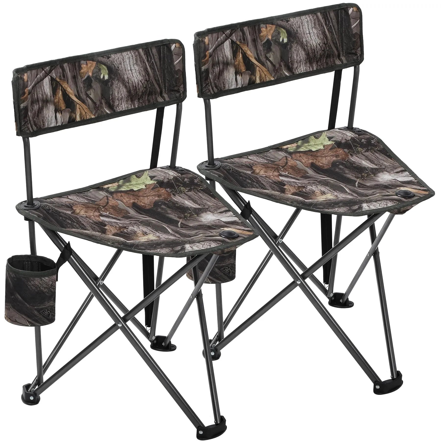 2 Pack Tall Tripod Chairs for Adults, Folding Lightweight Portable Golf Chairs for Spectators, Compact 3 Legged Tripod Stools Seat with Backrest for Camping Fishing Hunting, Camo