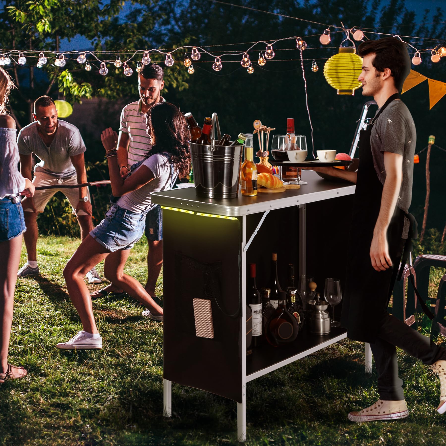 Engineered for rapid deployment at trade shows, campsites, and outdoor events, this Pop-Up LED Bar Table functions as a high-visibility mobile workstation. The integrated multi-color LED system provides immediate illumination in low-light environments, while the dual-tier design solves storage logistics for beverages and gear. Built on a reinforced aluminum frame, it offers a stable 143-pound load capacity in a completely portable format.