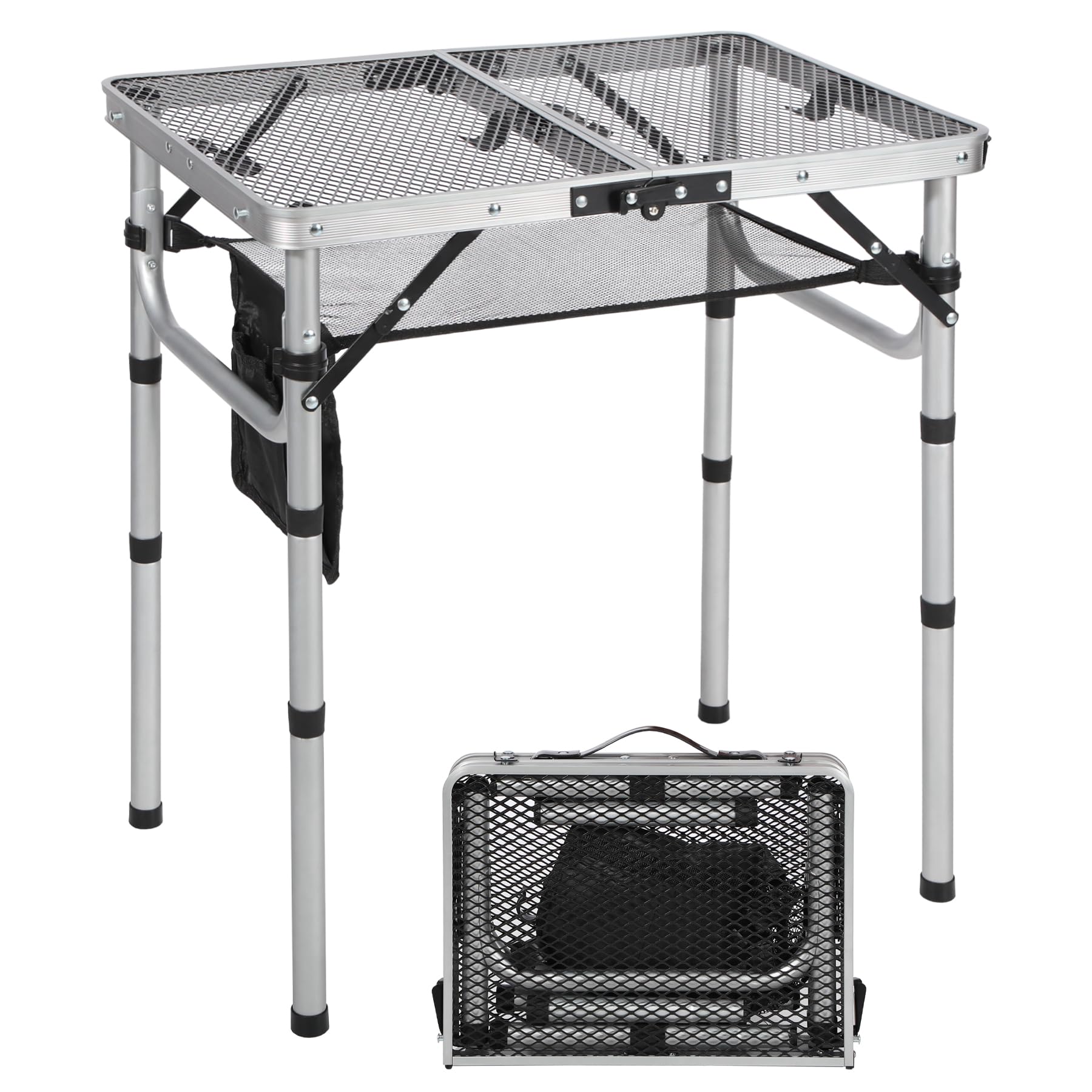 Engineered for safe outdoor cooking and efficient campsite organization, this folding grill table features a heat-resistant iron mesh desktop designed to support portable grills and hot cookware without warping. The lightweight aluminum alloy frame ensures structural stability on uneven terrain while remaining compact enough for tight vehicle storage. It provides a reliable, height-adjustable surface essential for picnics, tailgating, and RV travel.