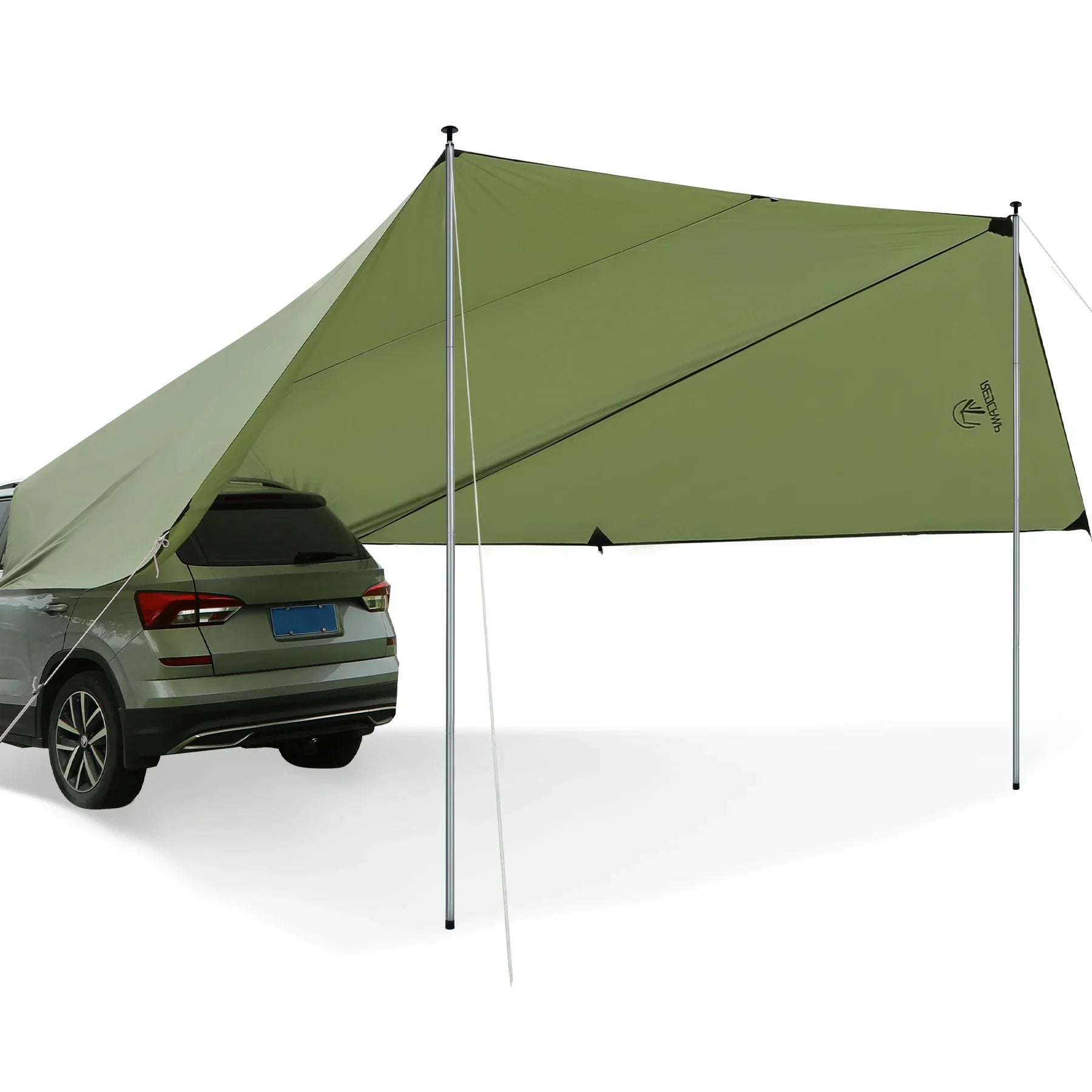 - AWNING (2 poles + vehicle): Big porch off the car—max footprint and walk-through height for cooking and group hangs.