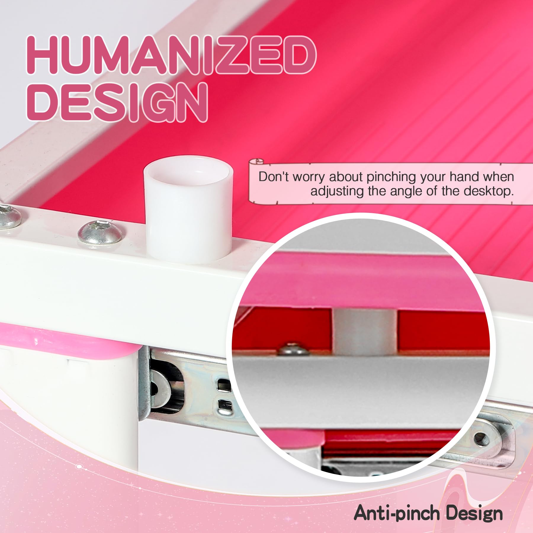 The LED desk lamp and book stand design of this gray children's multifunctional learning desk and chair set is really thoughtful, which provides all-round convenience and support for children's learning.